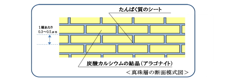 一般的に、良質のアコヤ真珠は結晶層1層あたり0.3~0.5㍈で千数百層以上から出来ているといわれています。そのことから溶けて出来た微細な凹凸のある真珠層数層だけを取り除くことで本来の輝きを取り戻すことができます。